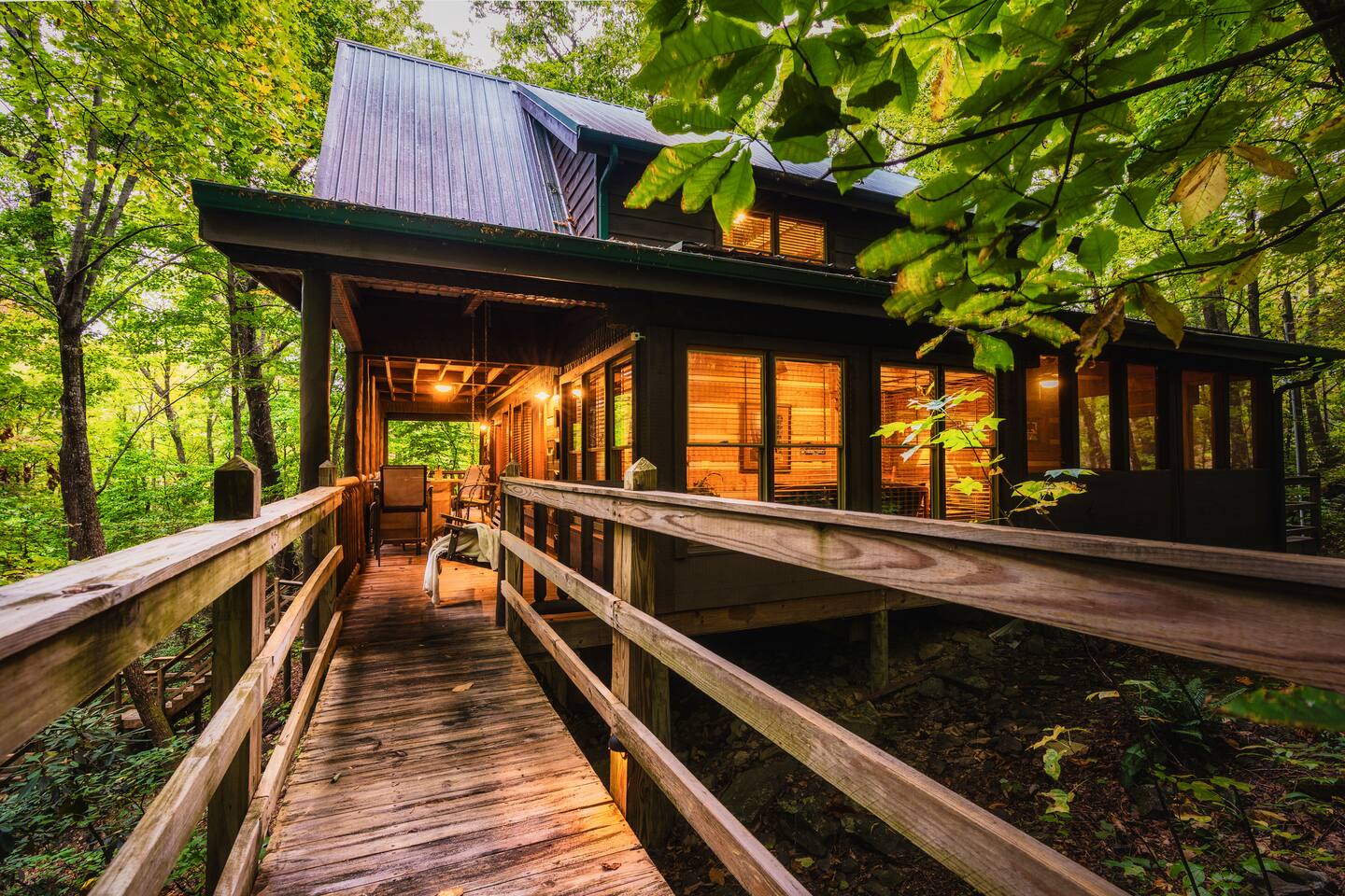 Recently renovated tranquil cabin on a mountain creek. Perfect getaway to take in nature. Enjoy the hot-tub or rocking chairs on the deck overlooking the creek and woods. 5 minutes from back entrance to Smoky Mountain National Park and 20 minutes from Sevierville/Pigeon Forge area. Available to rent with cabin on adjacent lot (Creekside) if vacationing with another family.
